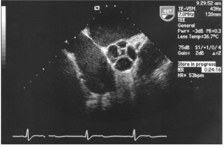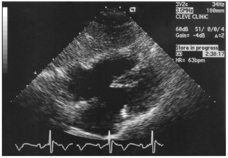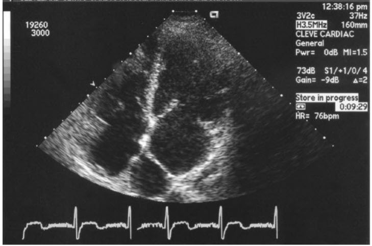 with the characteristic transthoracic echocardiogram (TTE) finding in figures below: