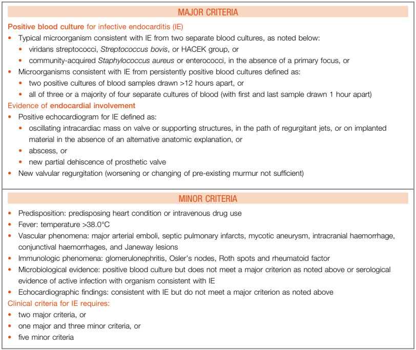 DUKE criteria for infective endocarditis: