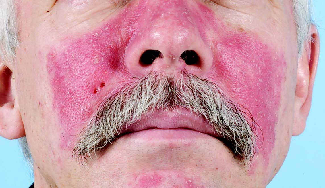 Rosacea on the mid-face with periorbital sparing.