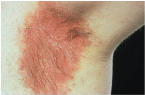 Seborrhoeic dermatitis of the axilla. The large flexures may become secondarily infected.