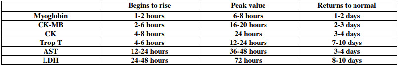 Cardiac enzymes and protein markers: Interpretation of the various cardiac enzymes has now largely been superceded by the introduction of troponin T and I. Questions still however commonly appear in the MRCP Key points for the exam: