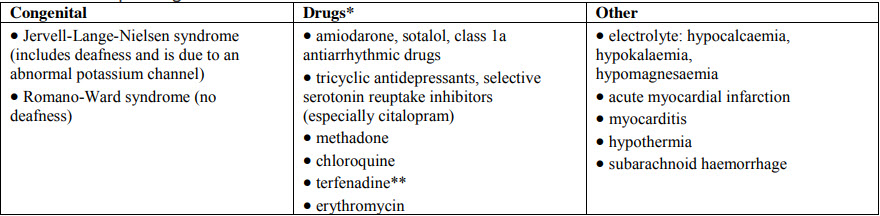 **a non-sedating antihistamine and classic cause of prolonged QT in a patient, especially if also taking P450 enzyme inhibitor, e.g. Patient with a cold takes terfenadine and erythromycin at the same time.