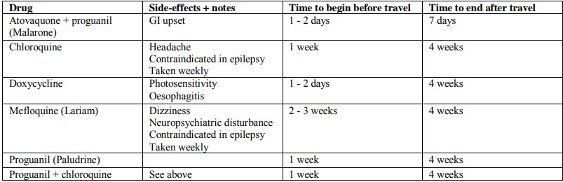 Up-to-date charts with recommended regimes for malarial zones should be consulted prior to prescribing: