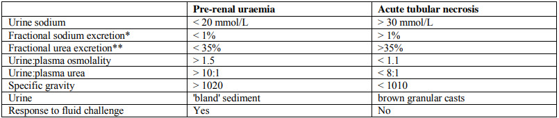 Acute renal failure: acute tubular necrosis vs. Prerenal uraemia: