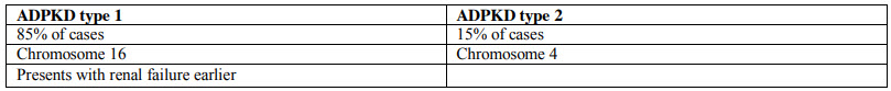 Correct Answer A: ADPKD type 2 = chromosome 4 = 15% of cases.