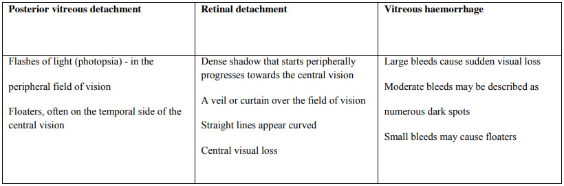 Differentiating posterior vitreous detachment, retinal detachment and vitreous haemorrhage: