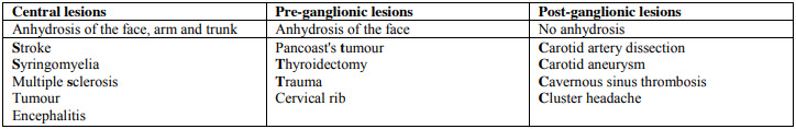 Correct Answer C: Horner's syndrome - anhydrosis determines site of lesion: