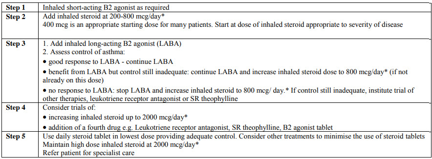 Correct Answer C: The management of stable asthma is now well established with a step-wise approach: