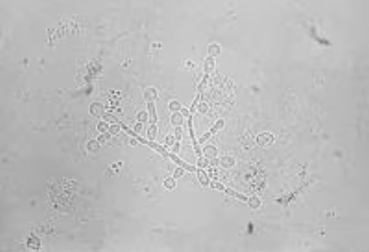 The most common causes of vaginal discharge, odor, pruritus, and/or discomfort are bacterial vaginosis, candida vulvovaginitis, and trichomoniasis. The image shows a direct wet mount prepared from a white vaginal discharge showing pseudohyphae, budding yeast, and human epithelial cells - vulvovaginal candidiasis (choice A). Examination of a fresh vaginal discharge provides the simplest and most rapid diagnostic test in aiding presumptive identification of Candida species.