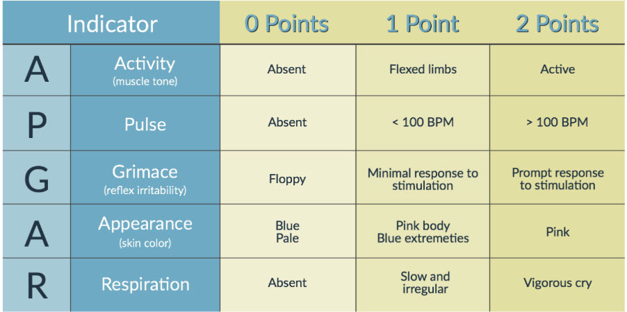 This baby would have an APGAR score of 2+2+0+1+2 = 7.