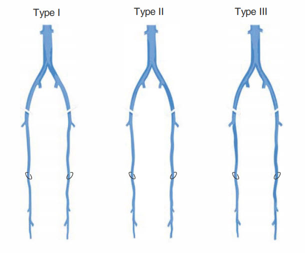 Aortoiliac disease can be classified into three types.