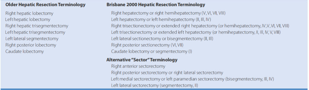 Which of the following correctly pairs the Brisbane 2000 hepatic resection terminology with appropriate liver segments?