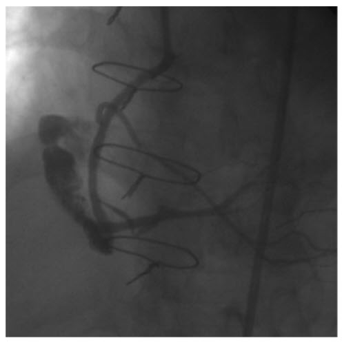 What does the angiography show (Fig. below)?