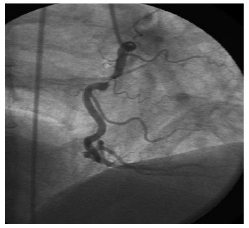 A 67-year-old man known for hypertension and hypercholesterolemia presented significant ST elevation in inferoposterior leads during the treadmill test. The angiogram shows (Fig. below)