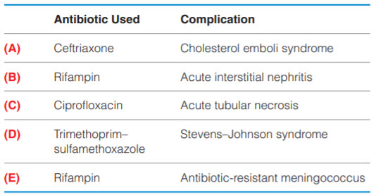 A 19-year-old college student develops fever, headache, and nuchal rigidity. Cerebrospinal fluid (CSF) cultures grow Neisseria meningitidis. She receives appropriate treatment, and her close contacts are given prophylactic antibiotic treatment. Her mother, who took this prophylactic treatment, developed a fever and maculopapular rash afterward. She is brought to the Emergency Department, and her laboratory values are shown below.