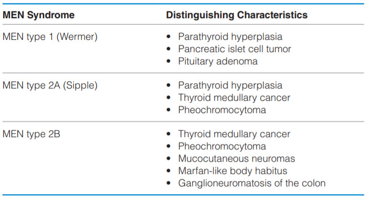 Mucocutaneous neuromas. The patient in this question is presenting with signs and symptoms of pheochromocytoma, a neuroendocrine tumor of the adrenal medulla that secretes high amounts of catecholamines. Given that he has a history of thyroid medullary cancer, the MEN syndromes must be considered highly on the differential diagnosis. Both MEN type 2A and MEN type 2B include thyroid medullary cancer and pheochromocytoma. However, only MEN type 2B includes mucocutaneous neuromas as one of its characteristic diagnoses. MEN type 2B also is characterized by marfan-like body habitus and ganglioneuromatosis of the colon. (A) Parathyroid hyperplasia is seen in MEN type 1 and MEN type 2A, but not in MEN type 2B. (C) Pituitary adenoma is seen in MEN type 1, but not in the other MEN syndromes. (D) Proptosis is often seen in Graves disease, the most common cause of hyperthyroidism. This information is summarized in Table below.