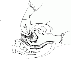 و هذه الصورة تُبين عملية تعديل وضع الرحم المقلوب يدوياً