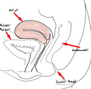 و هذه الصورة تُبين وضع الرحم المقلوب مُقارنة بوضع الرحم في الصورة السابقة