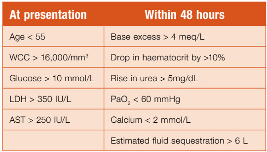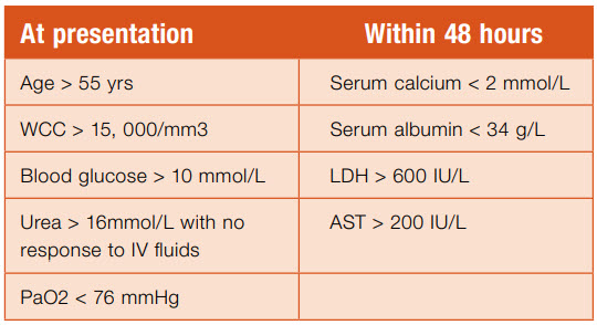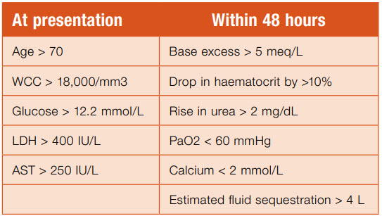 If ≥ three of these are present within 48 hours of onset then the patient most likely has severe pancreatitis.