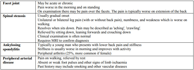 Lower back pain: Lower back pain (LBP) is one of the most common presentations seen in practice. Whilst the majority of presentations will be of a non-specific muscular nature it is worth keeping in mind possible causes which may need specific treatment.