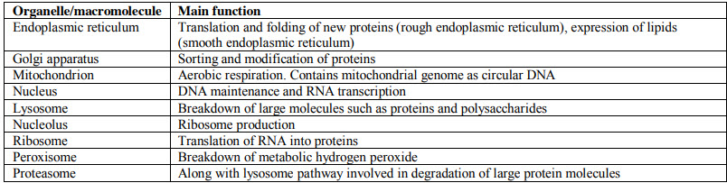 The table below summarizes the main functions of the major cell organelles: