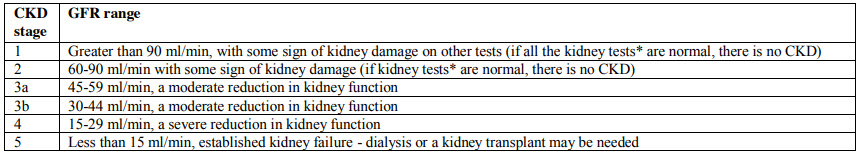 Chronic kidney disease: eGFR and classification: